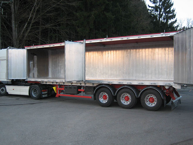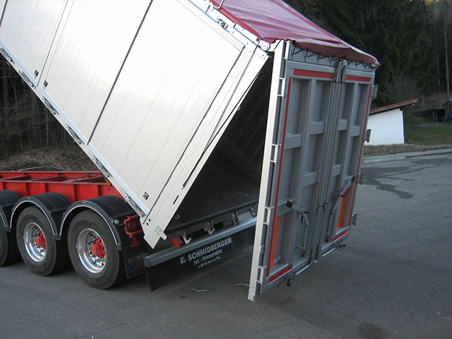 Effizienz durch Flexibilität ist der Grundgedanke für die Entwicklung dieses Kippsattels mit Seitentüren und weiteren Neuerungen, welche hierdurch das Einsatzspektrum des Kippsattels über den Schüttgutbereich hinaus erweitert und dadurch seine Effizienz nachhaltig steigert.
